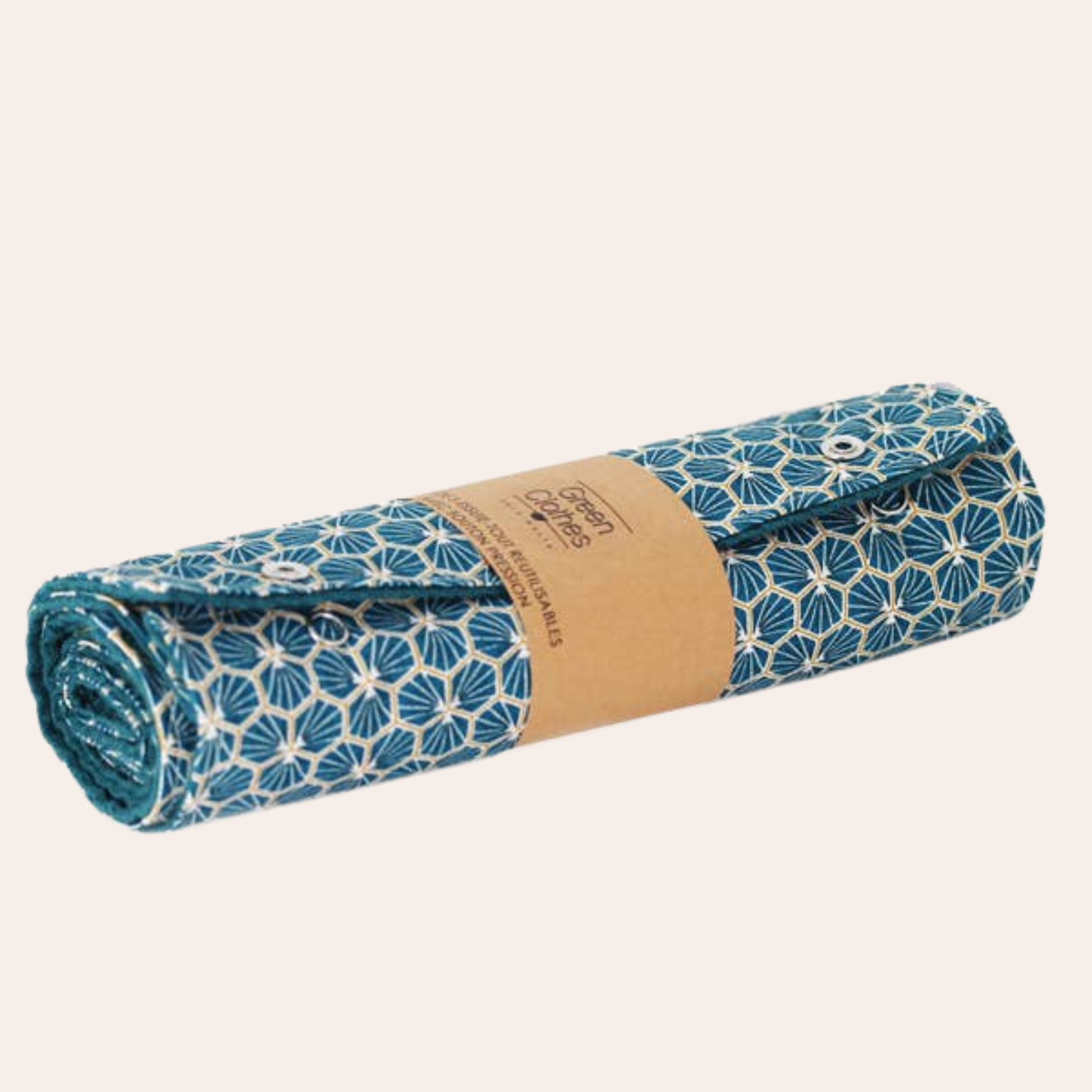 Set van 5 herbruikbare papieren handdoeken met drukknoop.